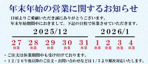 2025年1月6日(月)からは平常どおり営業をいたします。